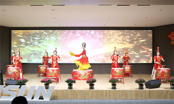 大會(huì)以《中國(guó)龍 鼓上舞》為創(chuàng)意開(kāi)場(chǎng),奉獻(xiàn)一場(chǎng)聲光輝映的感官盛宴,擊鼓催征,賡續(xù)奮戰(zhàn),彰顯奮進(jìn)新姿,擘畫盛世新篇!