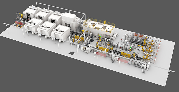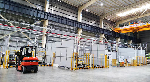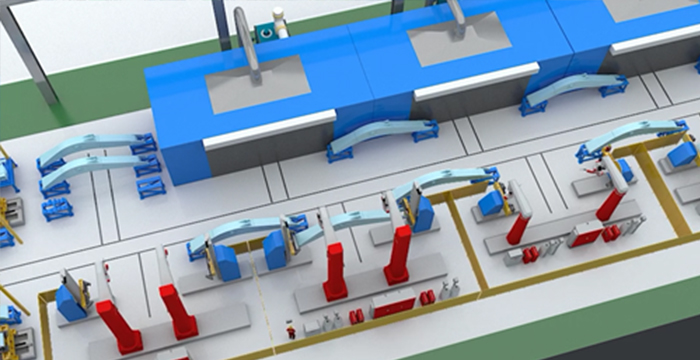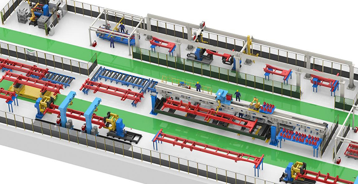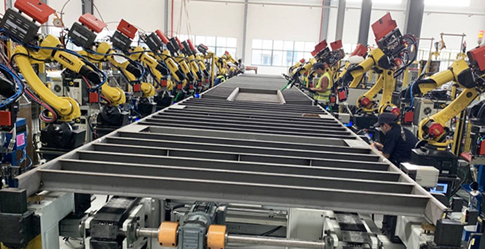 集裝箱焊接業(yè)務(wù)包括20尺、40尺標(biāo)準(zhǔn)箱型和45尺等非標(biāo)箱型柔性生產(chǎn)。實(shí)現(xiàn)集裝箱底架、側(cè)板、前端、門(mén)端、總裝高效自動(dòng)焊接。新松公司能夠提供從工藝、物流、焊接、打砂、噴漆、完工、信息化、數(shù)字孿生等集裝箱智能工廠整體解決方案。