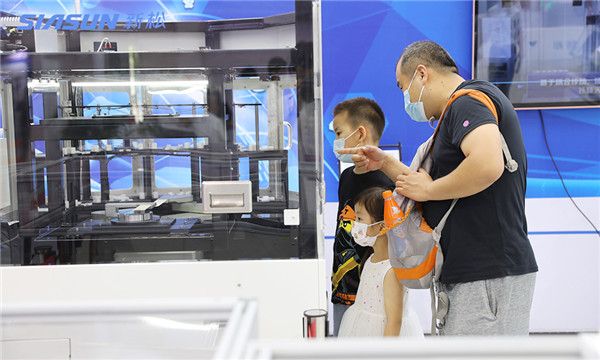 (圖)現(xiàn)場觀眾與新松產(chǎn)品親密互動
