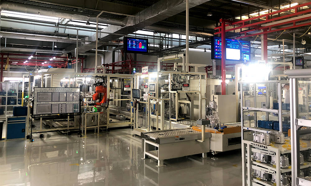 項(xiàng)目大量使用工業(yè)機(jī)器人及電子伺服壓機(jī),在有效提高產(chǎn)品品質(zhì)的同時(shí)減少人員投入,降低工人勞動(dòng)強(qiáng)度。小零件裝配等關(guān)鍵工位使用視覺檢測系統(tǒng),保證產(chǎn)品裝配質(zhì)量及可追溯性,在國內(nèi)同行業(yè)中處于領(lǐng)先水平。定量注油及定量涂膠系統(tǒng)的使用,提高產(chǎn)品品質(zhì)的同時(shí)降低原材料的投入。