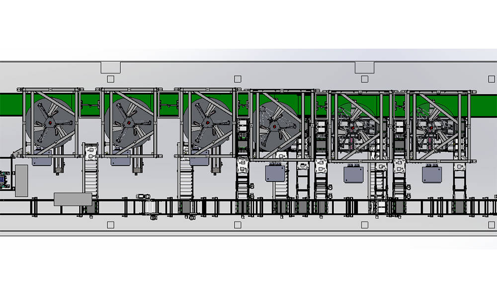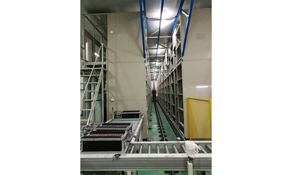 該化成分容生產(chǎn)測試系統(tǒng)覆蓋鋰離子電芯測試工序的全部工藝過程,實(shí)現(xiàn)注液電芯接收到電芯成品下線整個(gè)過程的全自動(dòng)化生產(chǎn)。在倉儲(chǔ)物流系統(tǒng)的管理調(diào)度、安全、專機(jī)效率和系統(tǒng)柔性等多方面進(jìn)行了優(yōu)化。
