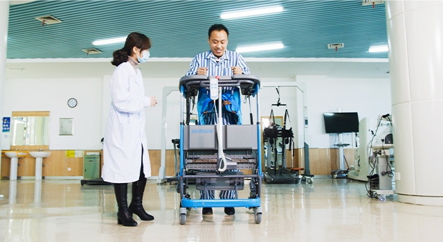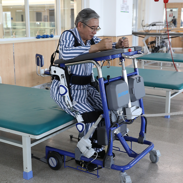 電動(dòng)站立助行器集電動(dòng)站立架、臺(tái)式助行器、移位機(jī)為一體。滿足使用者站立穩(wěn)定性訓(xùn)練、行走訓(xùn)練、體位轉(zhuǎn)移的需求。支撐臺(tái)的角度及減重吊帶,隨著患者姿態(tài)靈活調(diào)整。提供行走助力和速度控制功能,誘發(fā)患者主動(dòng)參與的同時(shí),提供有效支撐和安全保障。適用于下肢運(yùn)動(dòng)障礙患者站立訓(xùn)練與輔助、行走訓(xùn)練與輔助、轉(zhuǎn)運(yùn)訓(xùn)練與輔助。本產(chǎn)品搭載新松智能安全算法與智能控制面板,多重保護(hù)機(jī)制,使用者能夠通過(guò)產(chǎn)品提供的支撐助力從而自主站立,完成坐站轉(zhuǎn)移。同時(shí)能夠輔助移動(dòng)和運(yùn)送,在復(fù)健鍛煉中,提供助力保護(hù)支持,使用者自主進(jìn)行步行訓(xùn)練,實(shí)現(xiàn)場(chǎng)景轉(zhuǎn)換。